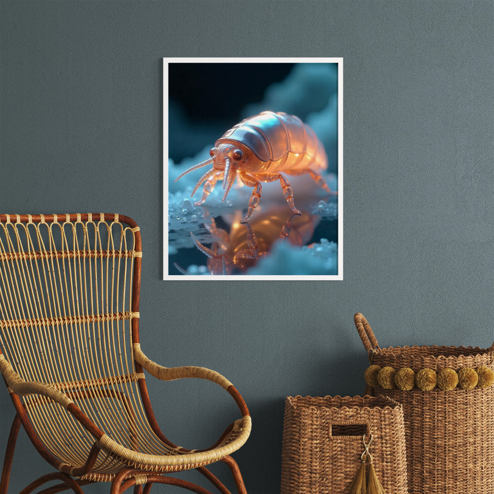 Ein futuristisches Insekt erstrahlt in warmem Licht und zieht sofort alle Blicke auf sich. Die Mischung aus Natur und High-Tech verleiht dem Motiv eine besondere Spannung. Ideal für alle, die ein außergewöhnliches Statement setzen wollen.