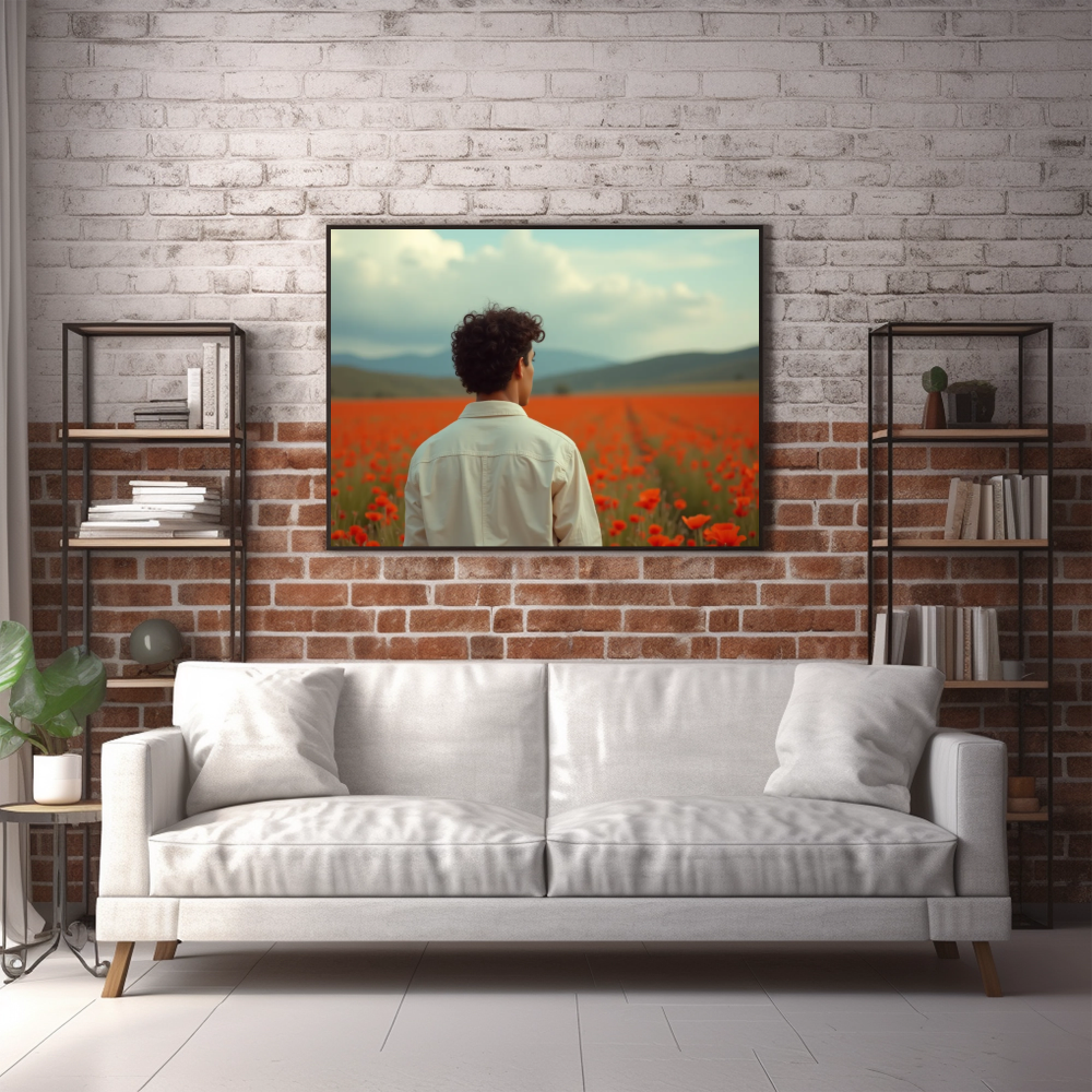 Ein Mann steht still inmitten eines endlosen Feldes aus leuchtend roten Mohnblüten. Die Luft ist erfüllt von Ruhe, die Zeit scheint für einen Moment zu stehen. Es ist ein Bild des Innehaltens – zwischen Erinnerung und Neubeginn